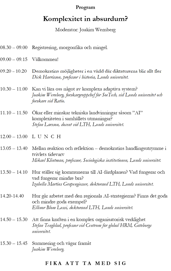 Plats: Lux Hörsal, Lunds universitet (Karta LUX hörsal)